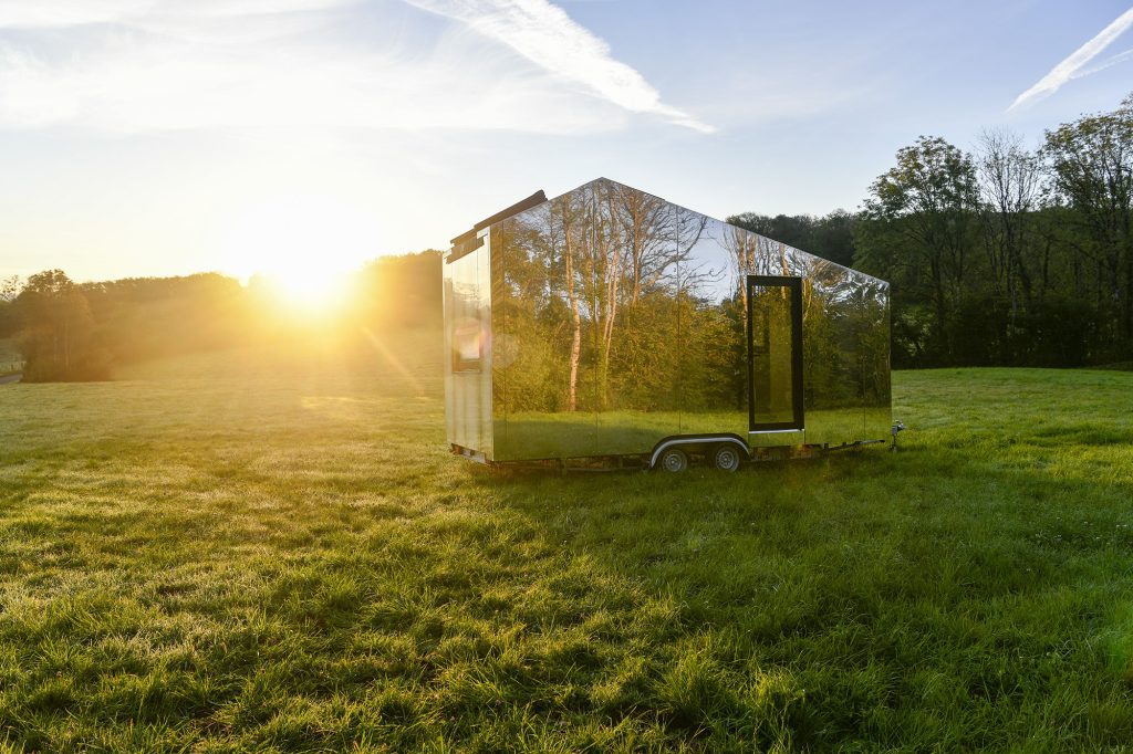 Grâce à son revêtement en aluminium, la Tiny House se fond dans son environnement et devient littéralement invisible. Posez la dans votre jardin et elle disparaitra de votre champ de vision. Posez la en pleine nature et vous profiterez d’un logement confortable dans un cadre idyllique.
